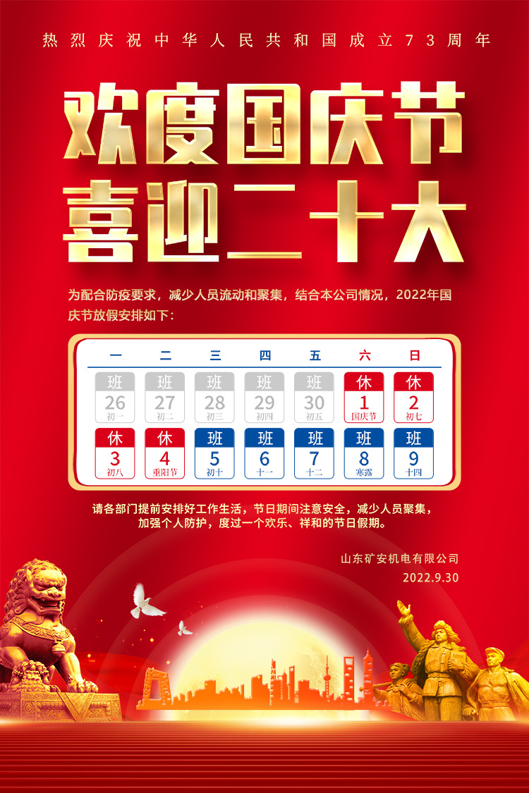 为配合防疫要求,减少人员流动和聚集,结合本公司情况,2022年国庆节放假安排如下